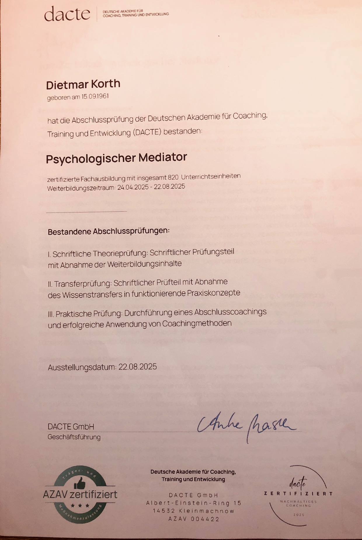 Psychologische Mediation verbindet klassische Mediationsmethoden mit systemischen Ansätzen, um langanhaltende oder schwierige Konflikte zu klären und zu lösen. Sie eignet sich bei wiederkehrenden inneren oder äußeren Konflikten, beruflichen oder privaten Krisen und hat das Ziel, im Dialog tragfähige Lösungen zu entwickeln. Meine Rolle ist es, als neutraler und unparteiischer Vermittler die Parteien dabei zu unterstützen, eigenständig eine passende Lösung für ihren Streit zu finden. Dabei entscheide ich nicht und mache auch keine direkten Lösungsvorschläge.
